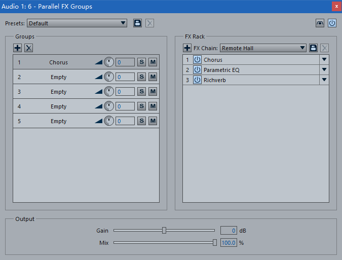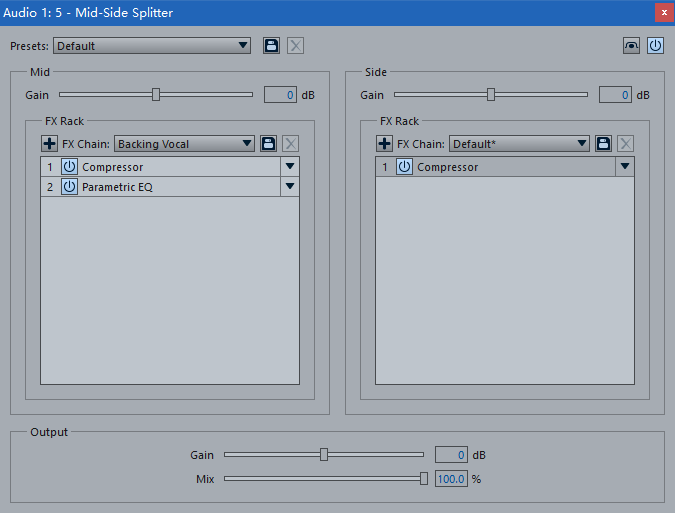 Soundop has added support for container effects in version 1.5. There are three of them added: FX Group, Mid-Side Splitter, and Parallel FX Groups.