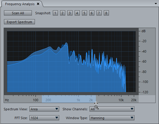 To zoom to a specific range on rulers, such time ruler in waveform editor, frequency meter in spectrum editor and Frequency Analysis panel, and meters in Phase Analysis pane, you can Ctrl + click and drag on the ruler to select the range to zoom to it.