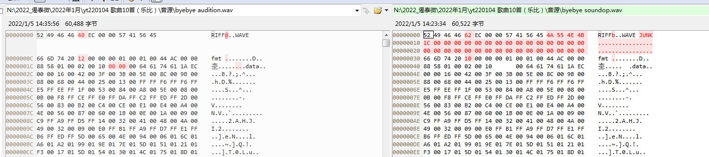 Comparing the hexadecimal files of the two wav files, it is found that the header files are different (Picture 2).