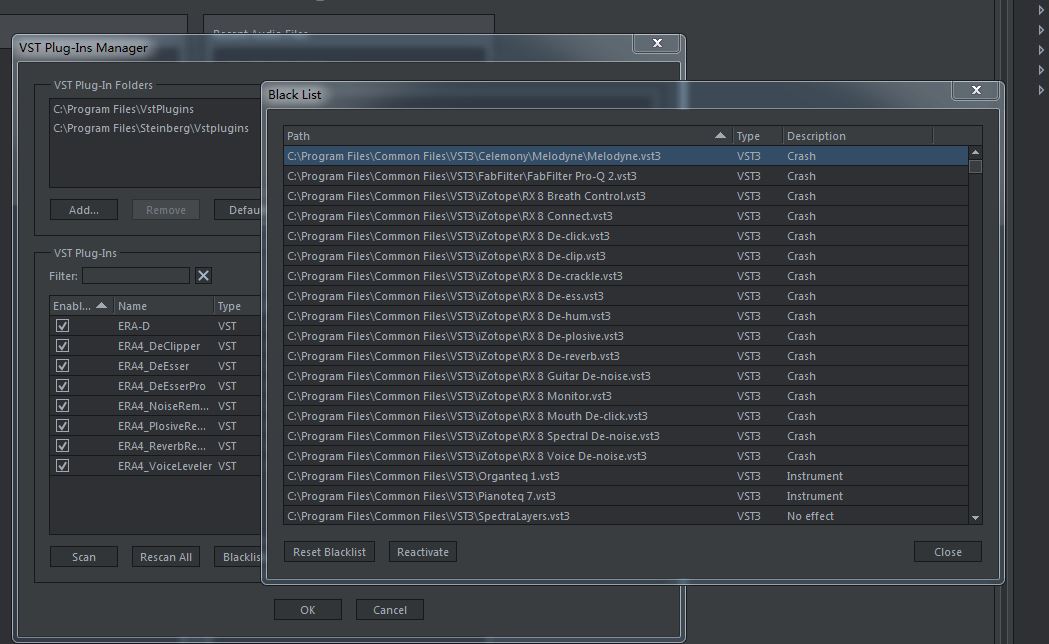 . Rescanned vst plugins, there are many plugins missing.