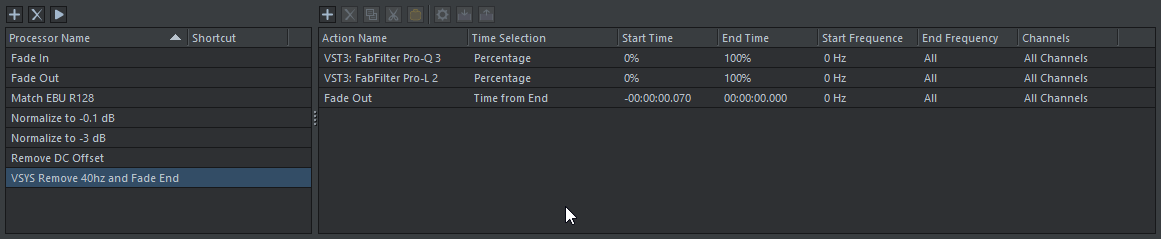 2. Applies FabFilter Pro-L 2 to limit the audio file to .01dB.