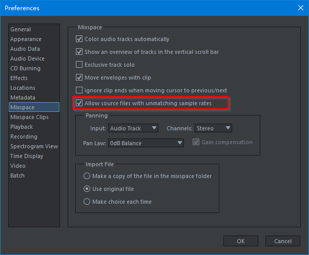 (11-04-2023, 10:14 AM)KCO Wrote: [ -> ](11-03-2023, 06:53 AM)ivosight Wrote: [ -> ]Do you mean to keep the original sample rate when adding audio files to mixspace and perform the sample rate conversion in real time when playing? We are not sure about the advantages of this mode. Do you know any DAW work in that way?